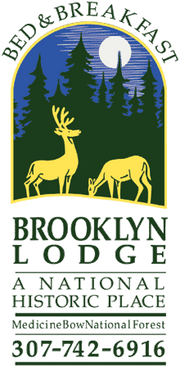 Our highly photographed covered porch runs the full length of the front of the lodge, with a porch swing and many rockers, overlooking our breathtaking front meadow and the Laramie Valley where many of our regular moose and deer graze, chipmunks scurry about filling their cheeks with sunflower seeds, and humming birds dive in to drink at our feeders.